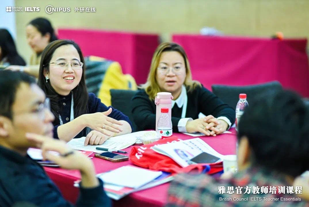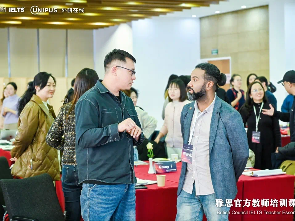 本期培训由北京外研在线数字科技有限公司(UNIPUS)和英国文化教育协会(British Council)共同举办。培训课程包含中外专家线上导学讲座、线上自主学习和线下专家面授课程三大模块。具有多年雅思教学经验及教师培训经验的中外专家精准把握雅思教师在教学过程中的痛点、要点,从雅思考试结构逻辑、雅思教学活动案例、雅思听说读写教学策略、AI在雅思教学中的应用等多个维度与参训学员展开交流。通过专家分享、互动交流、小组研讨等环节,参训教师以小组为单位形成了精彩各异的雅思教学方案。怀揣着对教育教学的热爱,基于共学共研的友情,雅思教学共同体稳步壮大。