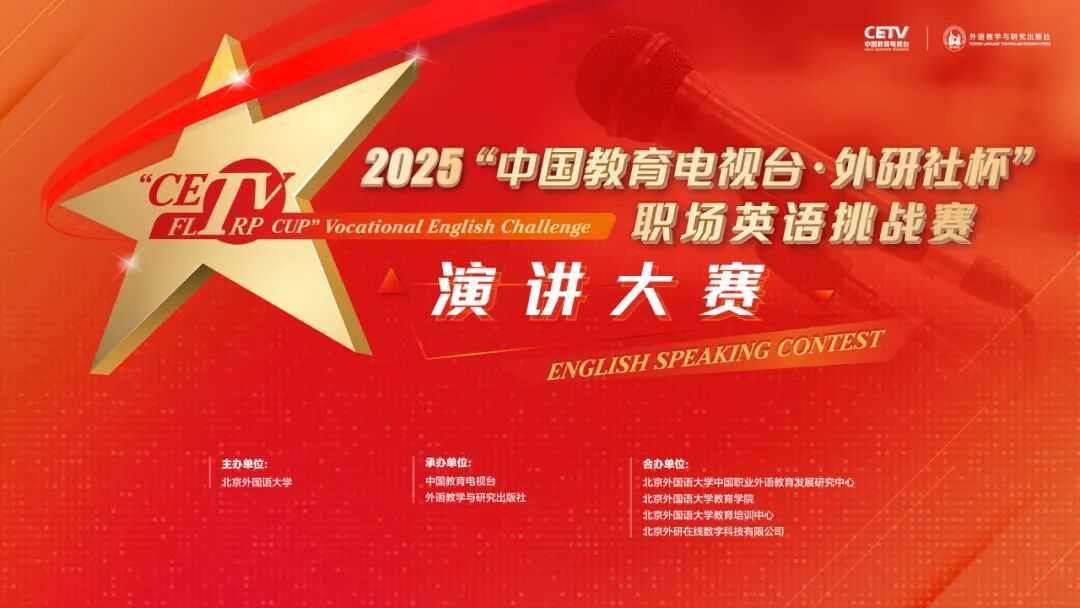 2025“中国教育电视台·外研社杯”职场英语挑战赛由北京外国语大学主办,中国教育电视台和外语教学与研究出版社联合承办。演讲大赛全国决赛设四个阶段,赛题锚定行业发展趋势和社会经济热点,考查、提升学生运用英语开展跨文化沟通、分析解决职场问题、高效完成多元任务的职业综合能力,强化用英语讲好中国故事、传播中国声音的国际传播素养。大赛积极探索技术赋能、数字传播,持续提升赛事的科学性、公平性、专业性,为院校创新教学实践、提升育人成效提供新思路。