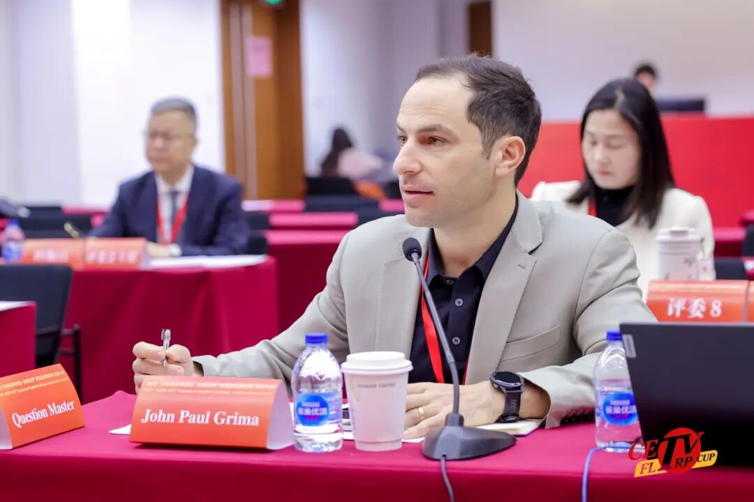本次大赛特邀首都师范大学Beverly Anne Praner、清华大学John Paul Grima担任第一阶段“主题演讲”提问评委。两位评委紧扣赛题内核、直击关键维度,推动选手在思辨中深化对产业变革、时代发展与全球责任的理解。选手们自信作答、沉着应对,展现了扎实的语言功底与开阔的视野格局。